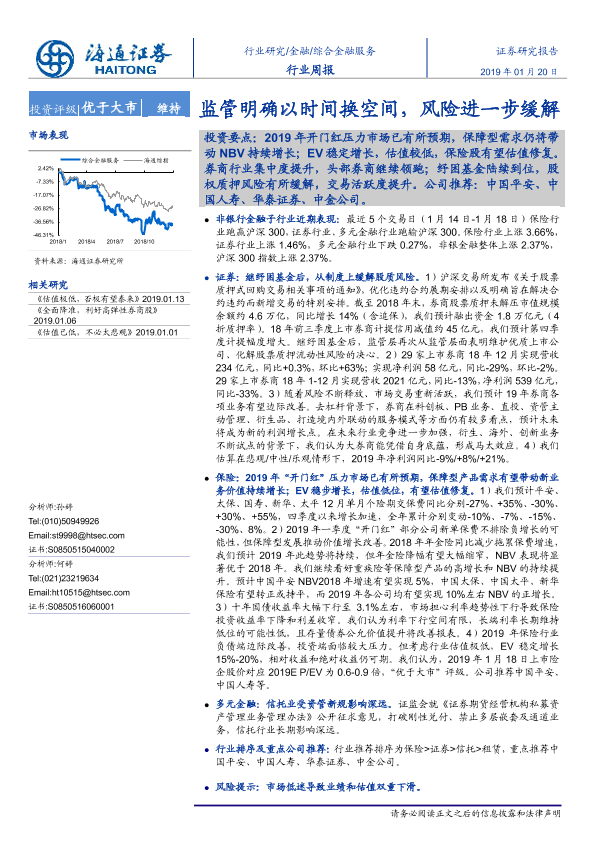 【海通证券】【20190120】综合金融服务行业周报:监管明确以时间换空间,风险进一步缓解-18页