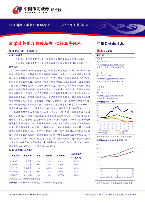 【银河证券】【20190120】非银行金融行业周报:股票质押制度持续松绑 化解业务风险-15页