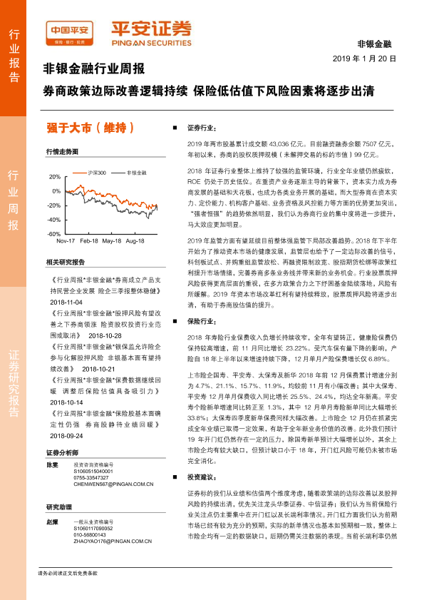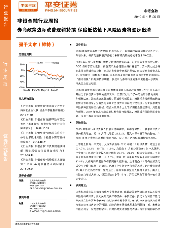【平安证券】【20190120】非银金融行业周报:券商政策边际改善逻辑持续 保险低估值下风险因素将逐步出清-20页