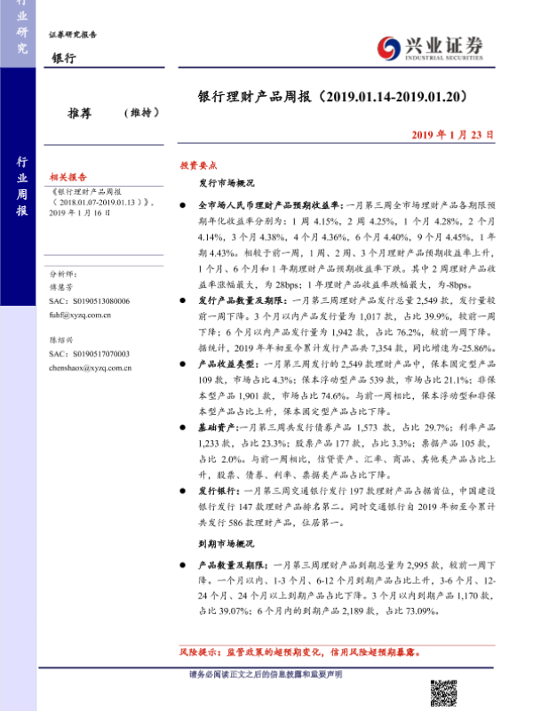 到期市场 发行市场 金融分析 银行理财产品 预期收益率