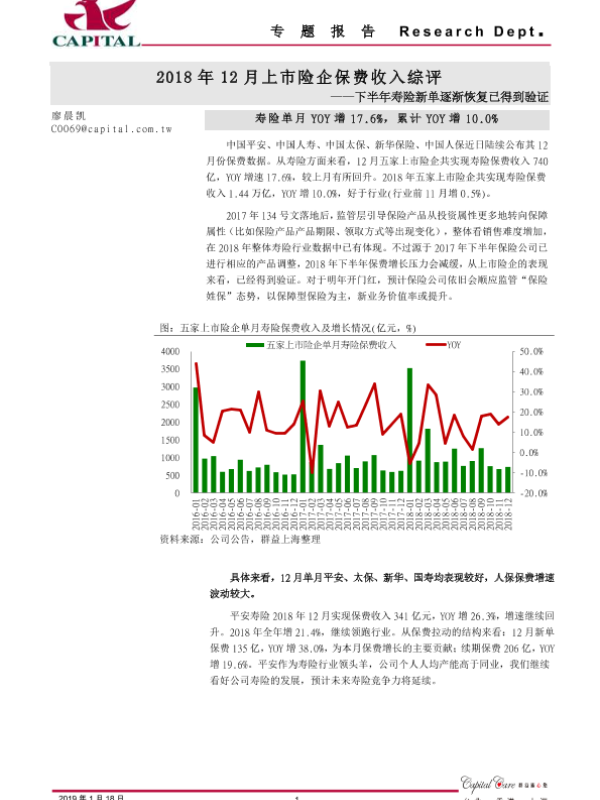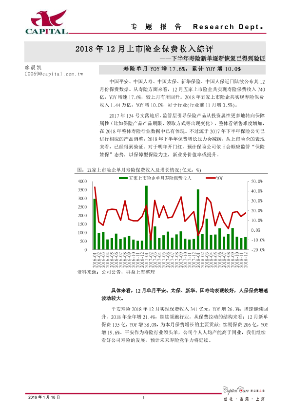 【群益证券】【20190121】下半年寿险新单逐渐恢复已得到验证:2018年12月上市险企保费收入综评-8页