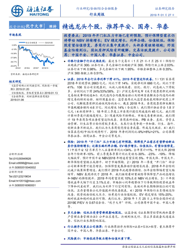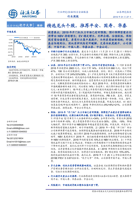 【海通证券】【20190127】综合金融服务行业周报:精选龙头个股,推荐平安、国寿、华泰-16页