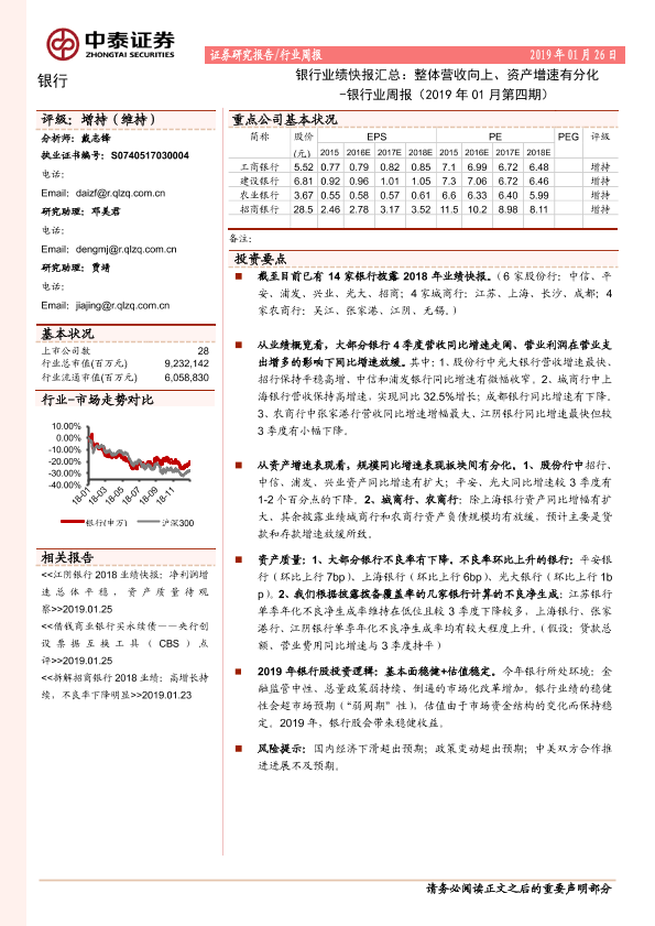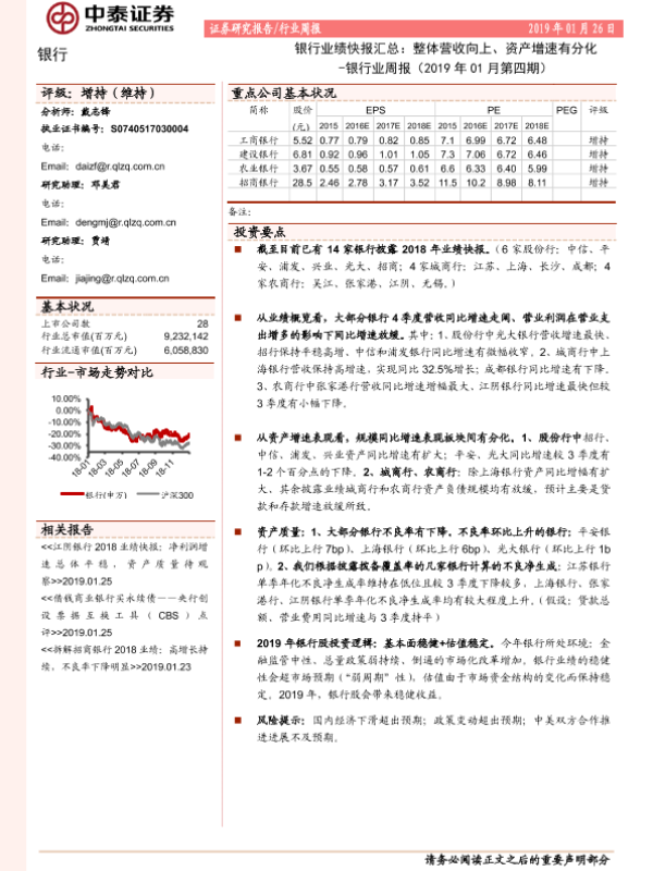 【中泰证券】【20190126】银行业绩快报汇总:整体营收向上、资产增速有分化-15页