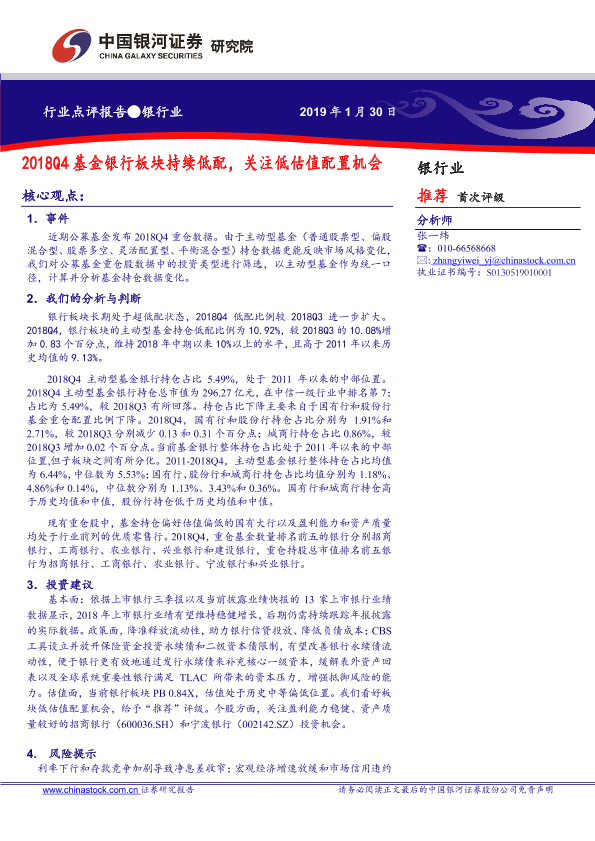【银河证券】【20190130】2018Q4受9月基金银行板块持续低配,关注低估值配置机会-8页