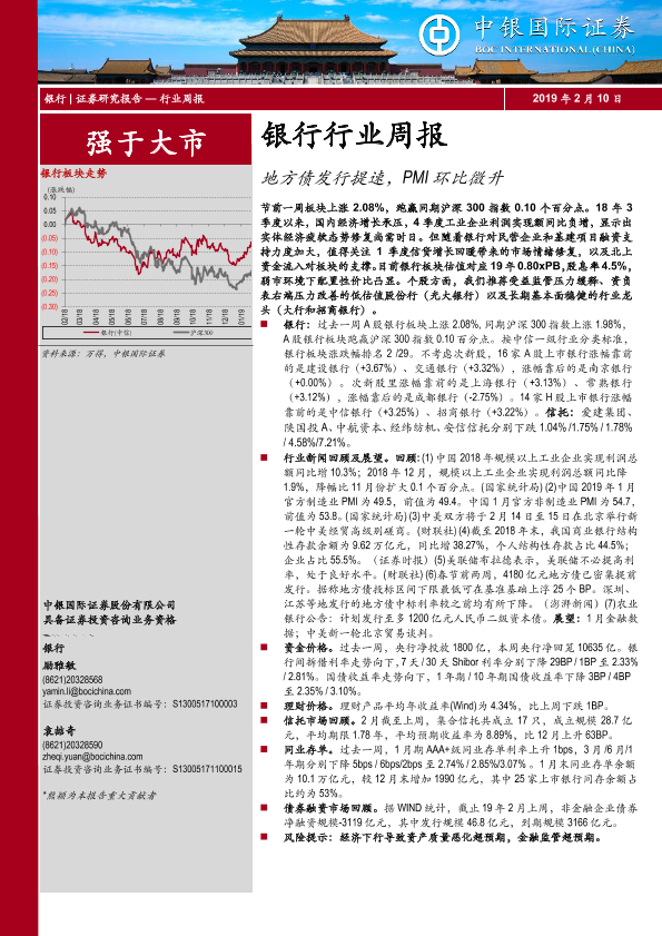 【中银证券】【20190210】银行行业周报:地方债发行提速,PMI环比微升-18页
