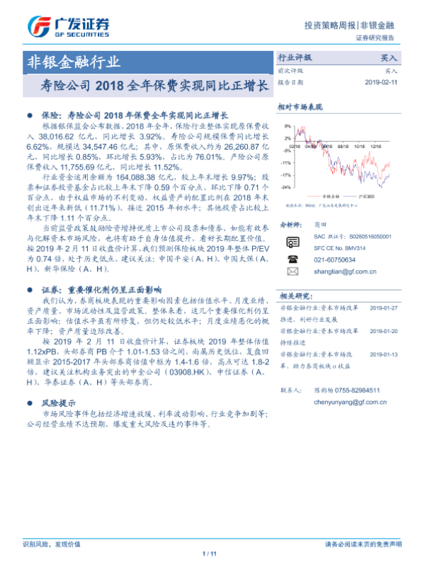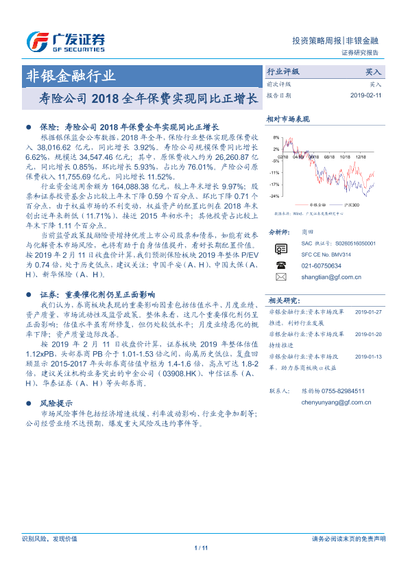 【广发证券】【20190211】非银金融行业投资策略周报:寿险公司2018全年保费实现同比正增长-11页