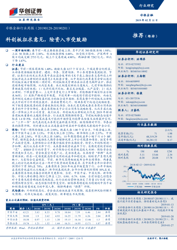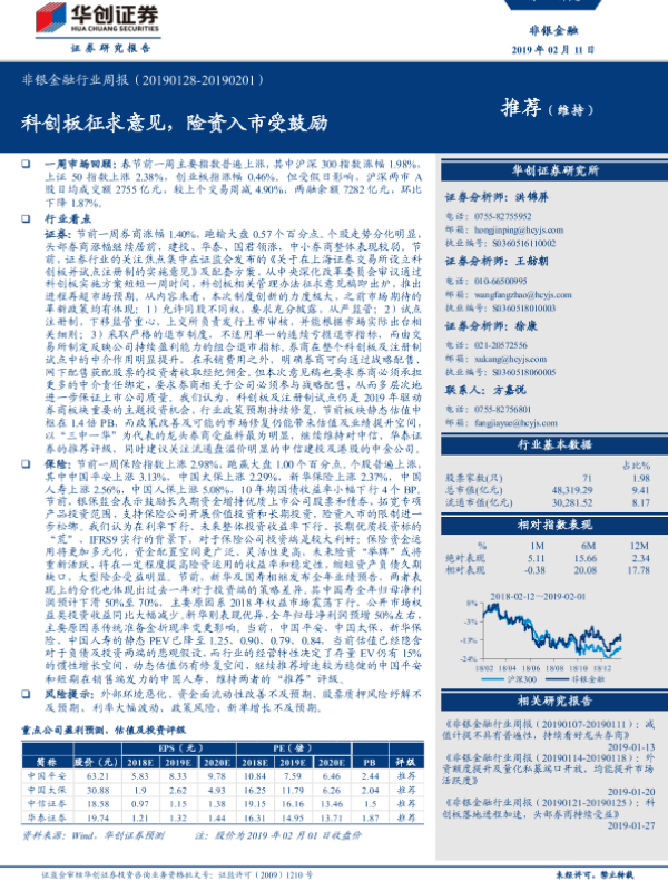 【华创证券】【20190211】非银金融行业周报:科创板征求意见,险资入市受鼓励-17页