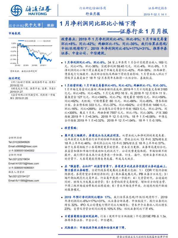 【海通证券】【20190214】证券行业1月月报:1月净利润同比环比小幅下滑-7页