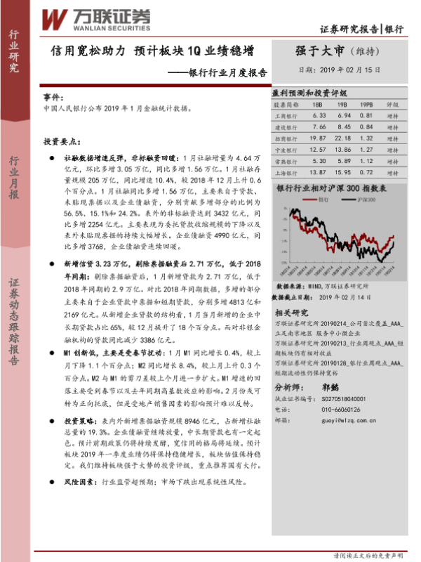 【万联证券】【20190215】银行行业月度报告:信用宽松助力 预计板块1Q业绩稳增-3页