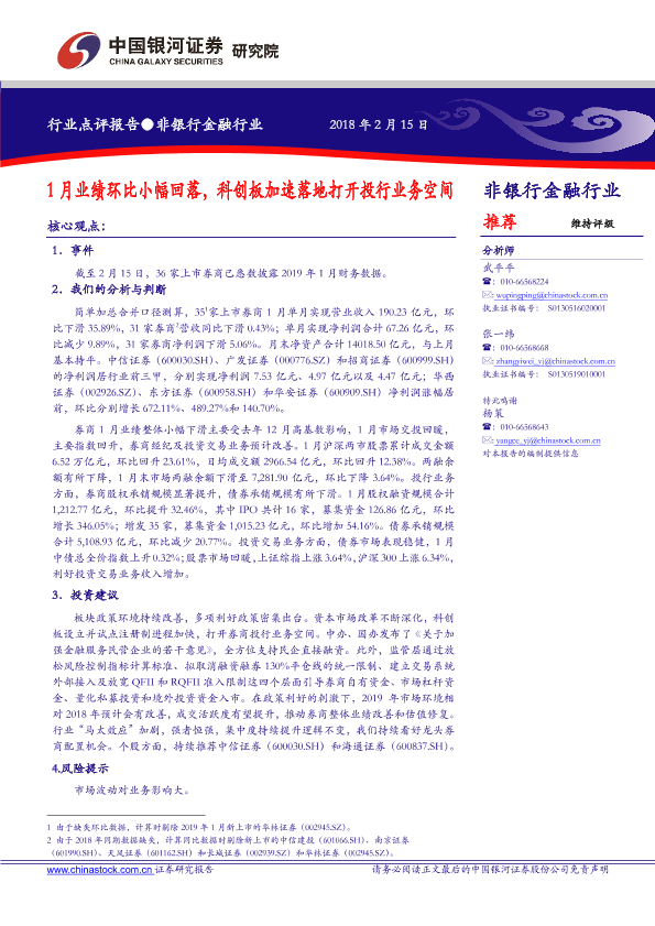 【银河证券】【20190215】1月业绩环比小幅回落,科创板加速落地打开投行业务空间-3页