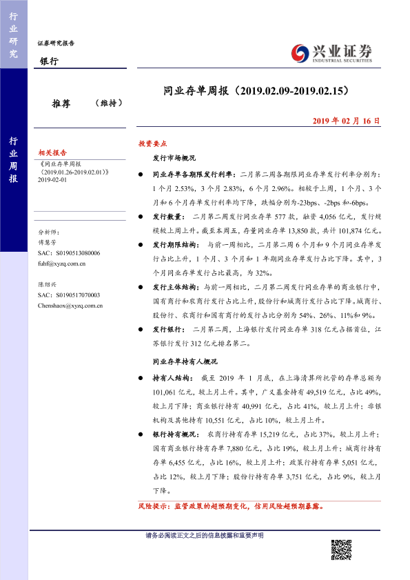 【兴业证券】【20190216】同业存单周报-10页