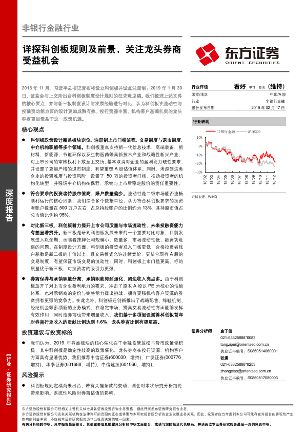 【东方证券】【20190217】非银行金融行业:详探科创板规则及前景,关注龙头券商受益机会-27页