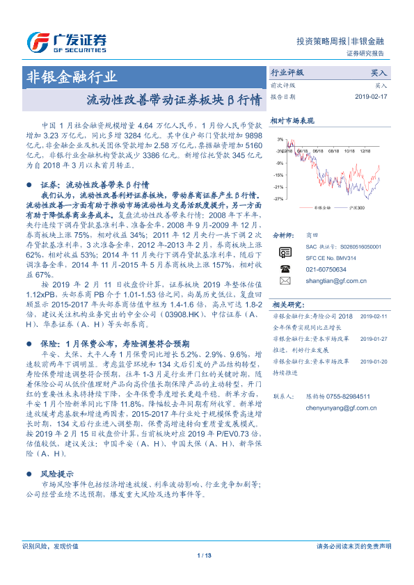 【广发证券】【20190217】非银金融行业:流动性改善带动证券板块β行情-13页