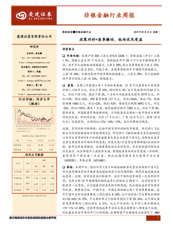 【爱建证券】【20190218】非银金融行业周报:政策利好+春季躁动,板块优先受益-14页