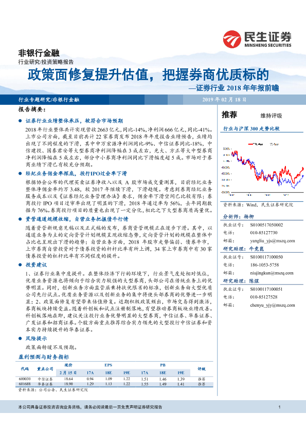 【民生证券】【20190218】证券行业2018年年报前瞻:政策面修复提升估值,把握券商优质标的-21页