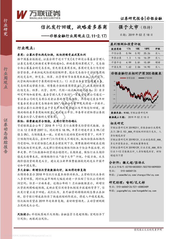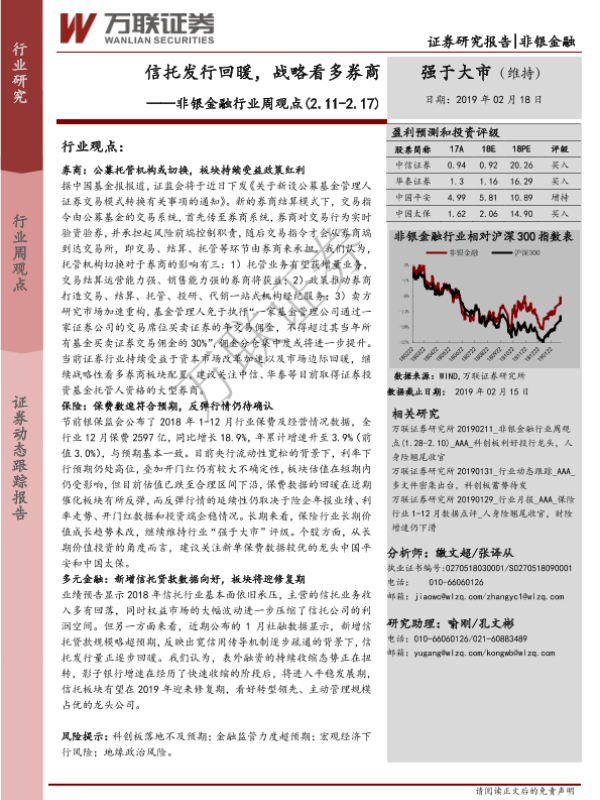 【万联证券】【20190218】非银金融行业周观点:信托发行回暖,战略看多券商-15页