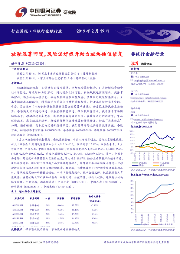 【银河证券】【20190219】非银行金融行业:社融显著回暖,风险偏好提升助力板块估值修复-14页