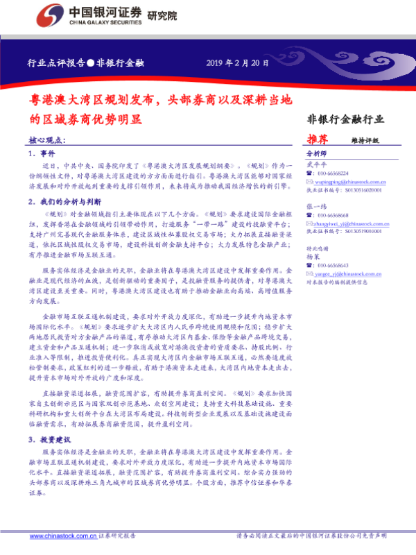 【银河证券】【20190220】非银行金融:粤港澳大湾区规划发布,头部券商以及深耕当地的区域券商优势明显-4页