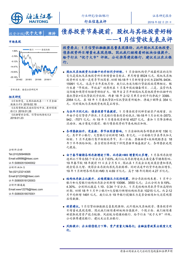 【海通证券】【20190221】1月信贷收支表点评:债券投资节奏提前,股权与其他投资好转-4页