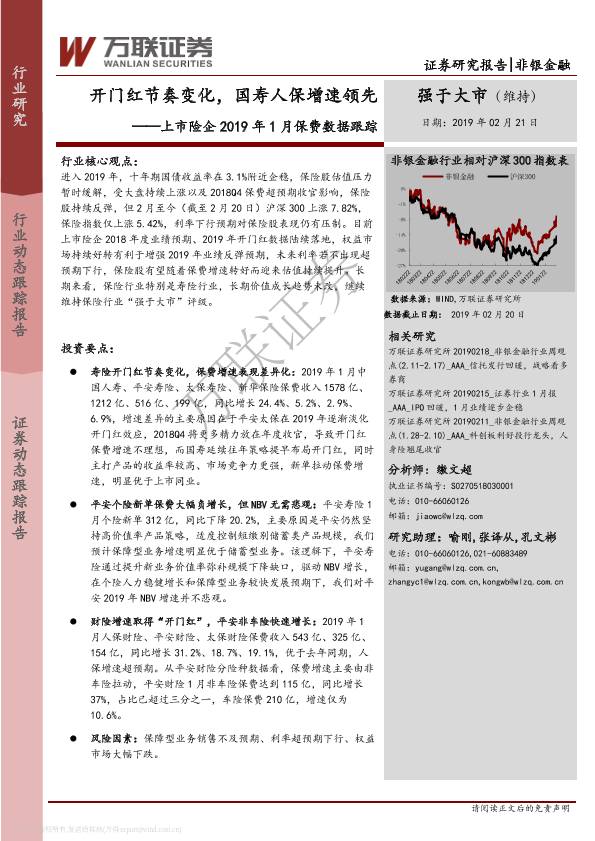 【万联证券】【20190221】上市险企2019年1月保费数据跟踪:开门红节奏变化,国寿人保增速领先-3页