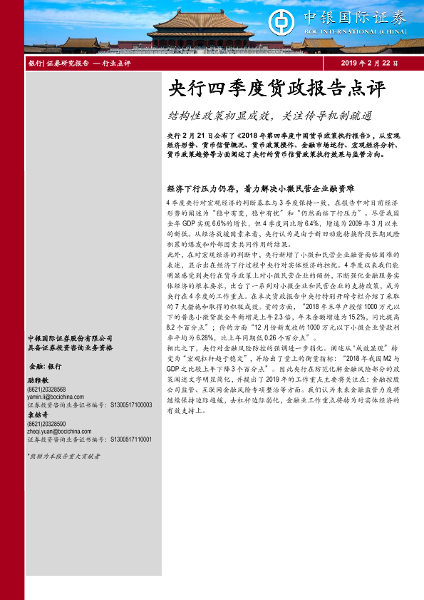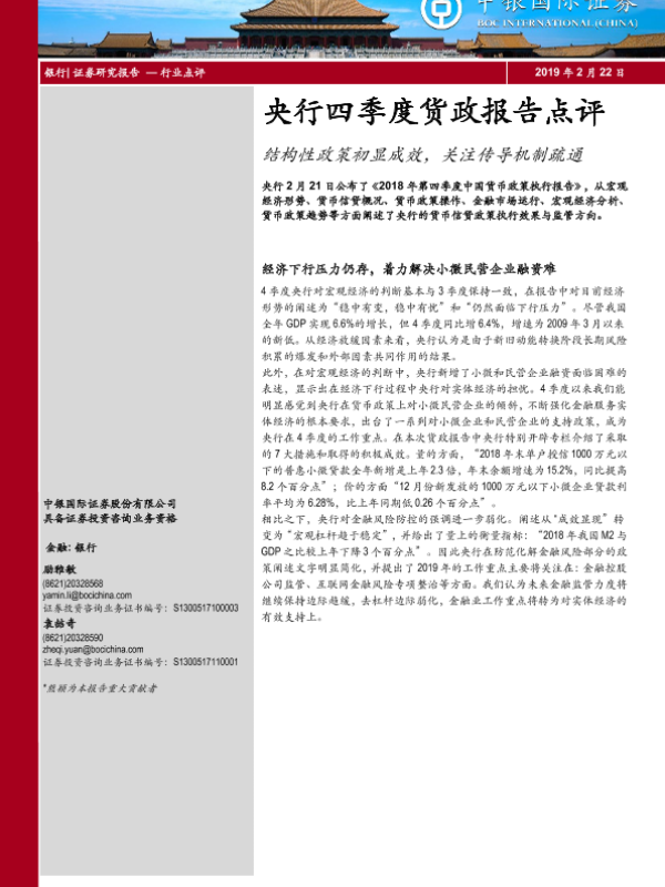 【中银证券】【20190222】央行四季度货政报告点评:结构性政策初显成效,关注传导机制疏通-6页