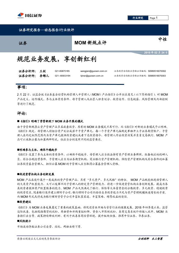 【国信证券】【20190224】证券行业MOM新规点评:规范业务发展,享创新红利-3页