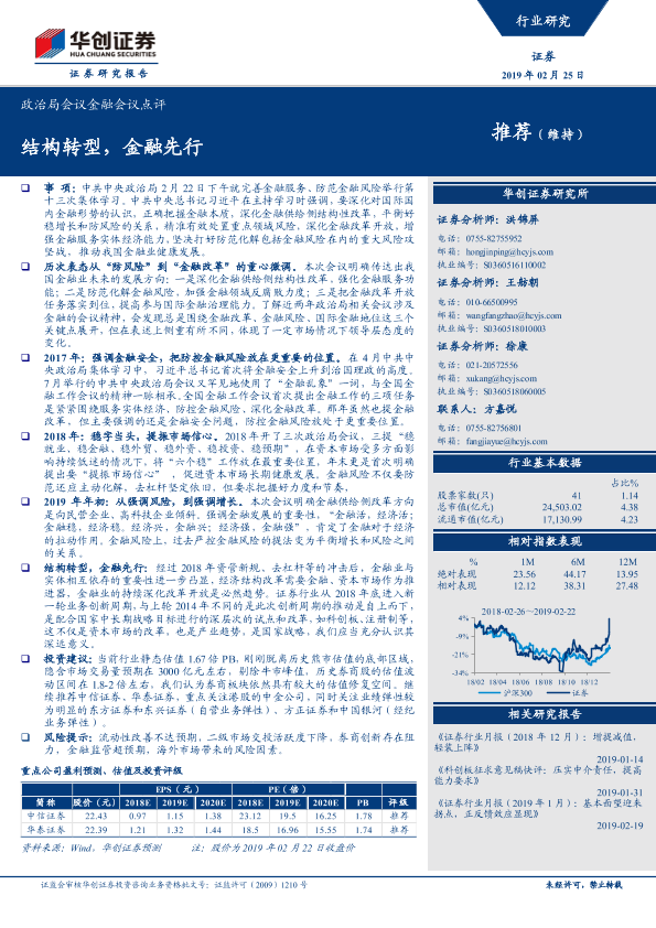 【华创证券】【20190225】政治局会议金融会议点评:结构转型,金融先行-6页
