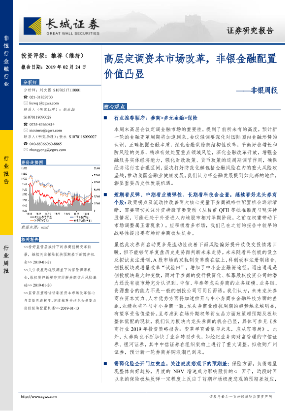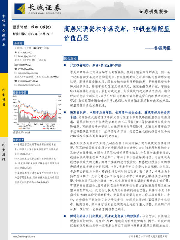 【长城证券】【20190224】高层定调资本市场改革,非银金融配置价值凸显-36页