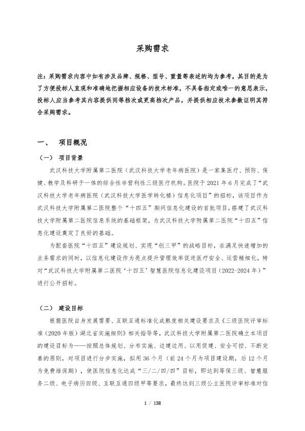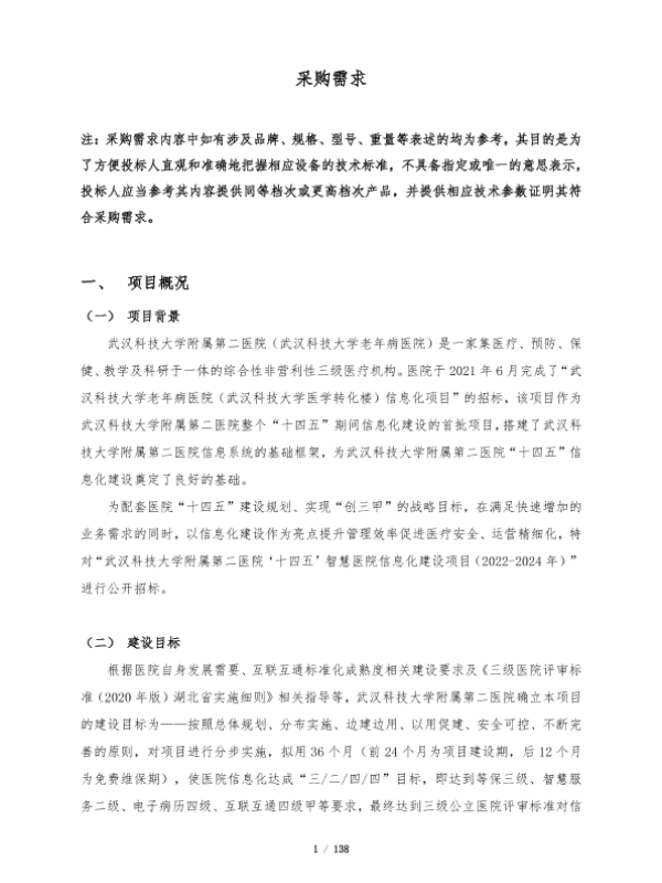 【武汉科技大学医院】【2021】武汉科技大学医院智慧医院信息化建设项目 采购需求-138页