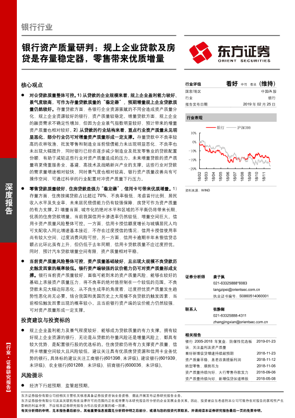 【东方证券】【20190225】银行资产质量研判:规上企业贷款及房贷是存量稳定器,零售带来优质增量-22页