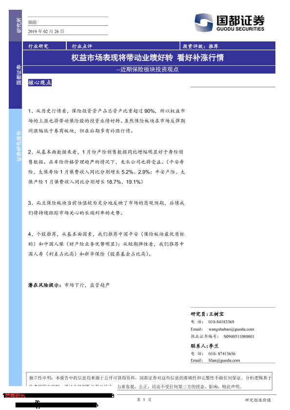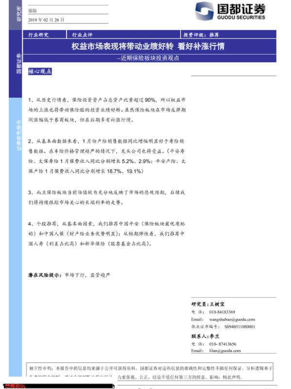 【国都证券】【20190226】近期保险板块投资观点:权益市场表现将带动业绩好转 看好补涨行情-2页