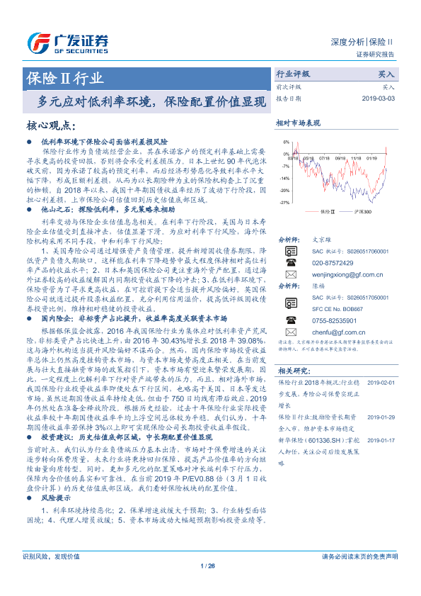 【广发证券】【20190303】保险Ⅱ行业深度分析:多元应对低利率环境,保险配置价值显现-26页