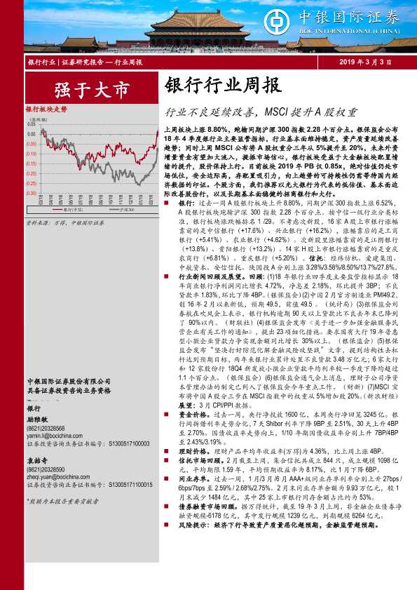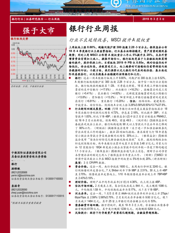 【中银证券】【20190303】银行行业周报:行业不良延续改善,MSCI提升A股权重-18页