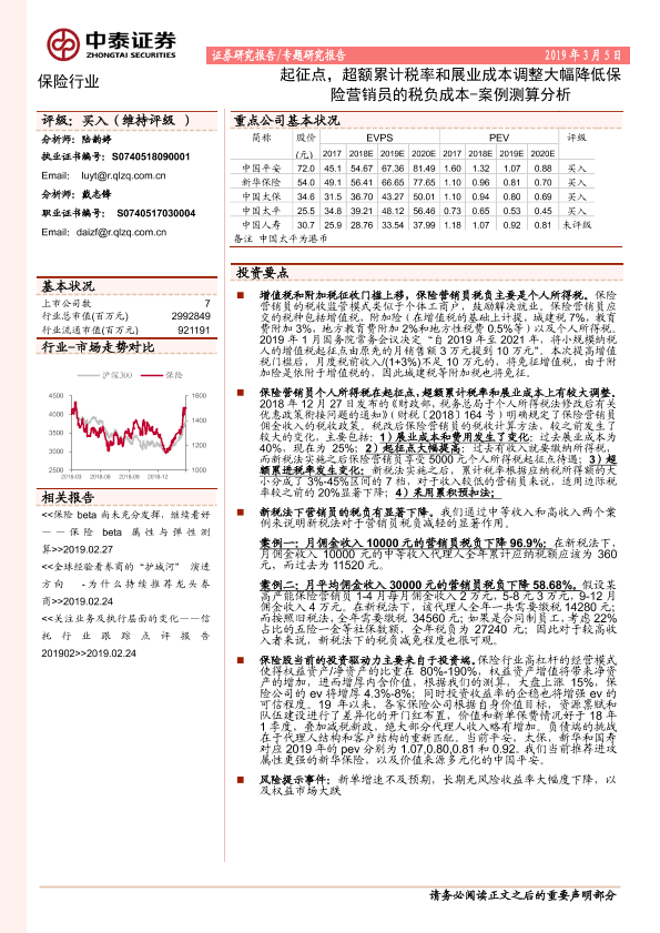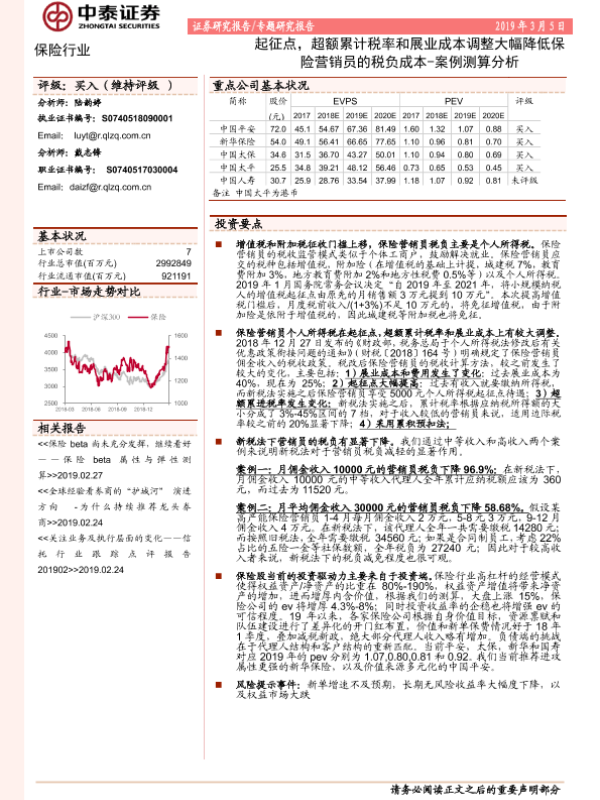 【中泰证券】【20190305】起征点,超额累计税率和展业成本调整大幅降低保险营销员的税负成本-案例测算分析-11页