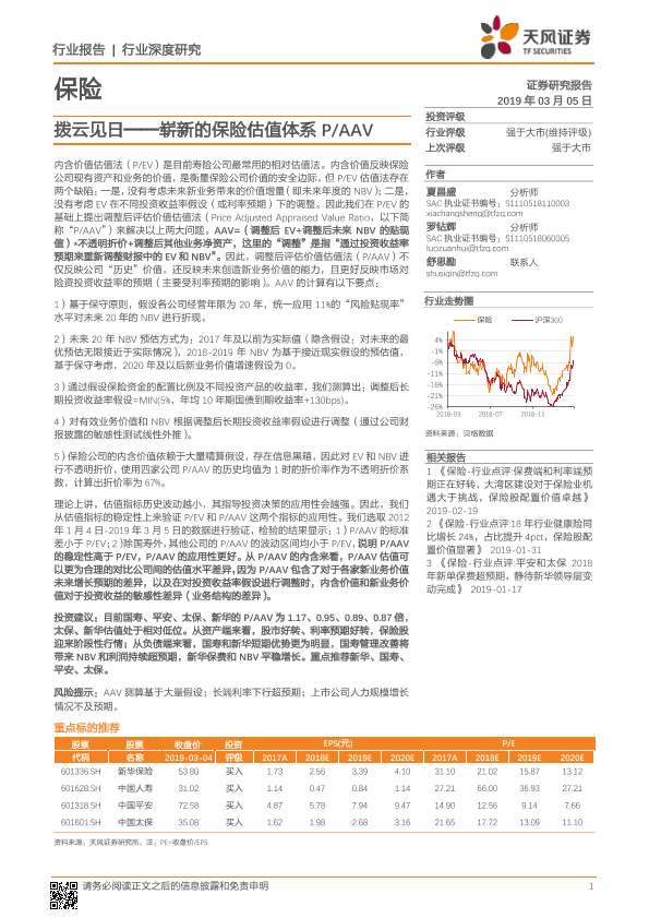 【天风证券】【20190305】拨云见日——崭新的保险估值体系P AAV-15页