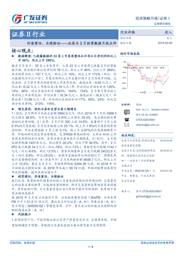 【广发证券】【20190306】证券业2月经营数据月报点评:价值重估,业绩验证-8页