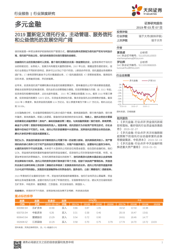 【天风证券】【20190307】2019重新定义信托行业,主动管理、服务信托和公益信托的发展空间广阔-22页