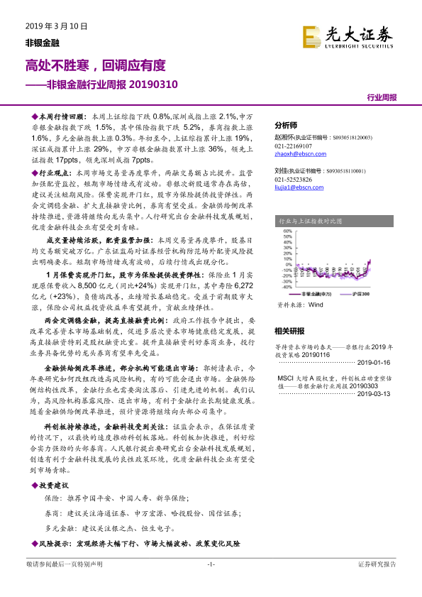保险 券商 股市分析 金融科技 非银金融