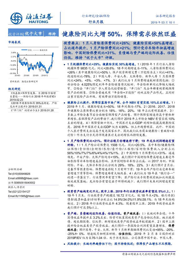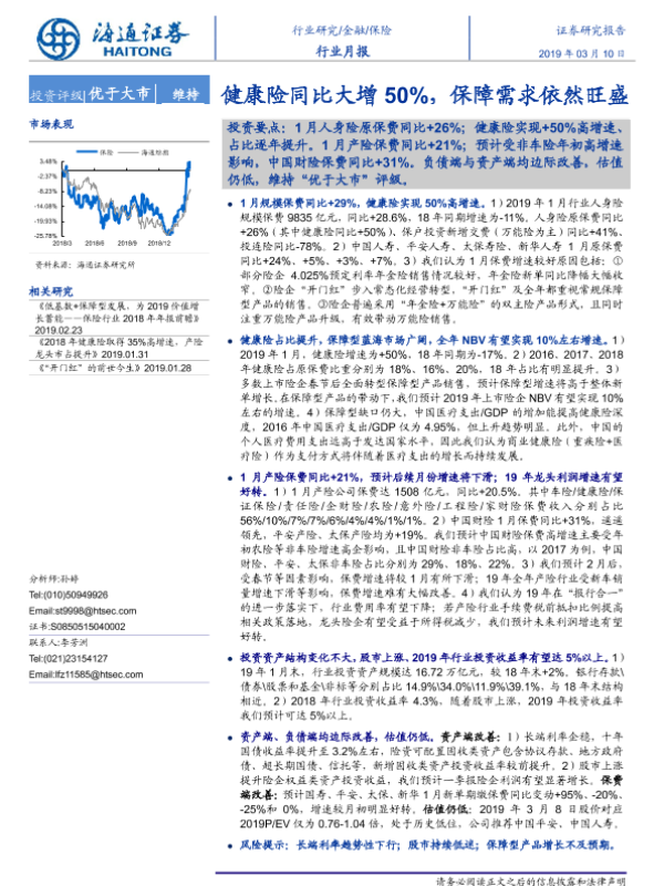 【海通证券】【20190310】保险行业月报:健康险同比大增50%,保障需求依然旺盛-4页