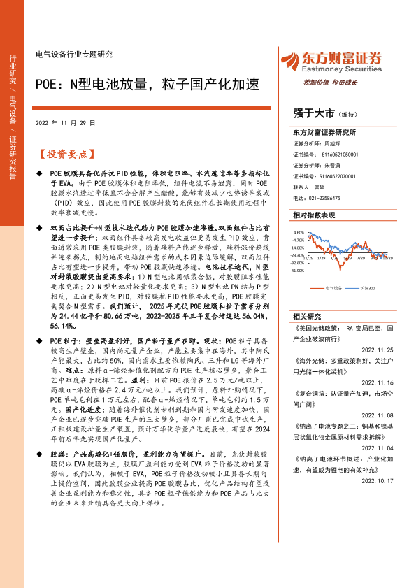 【东方财富证券】【20221129】电气设备行业专题研究:POE:N型电池放量,粒子国产化加速-28页