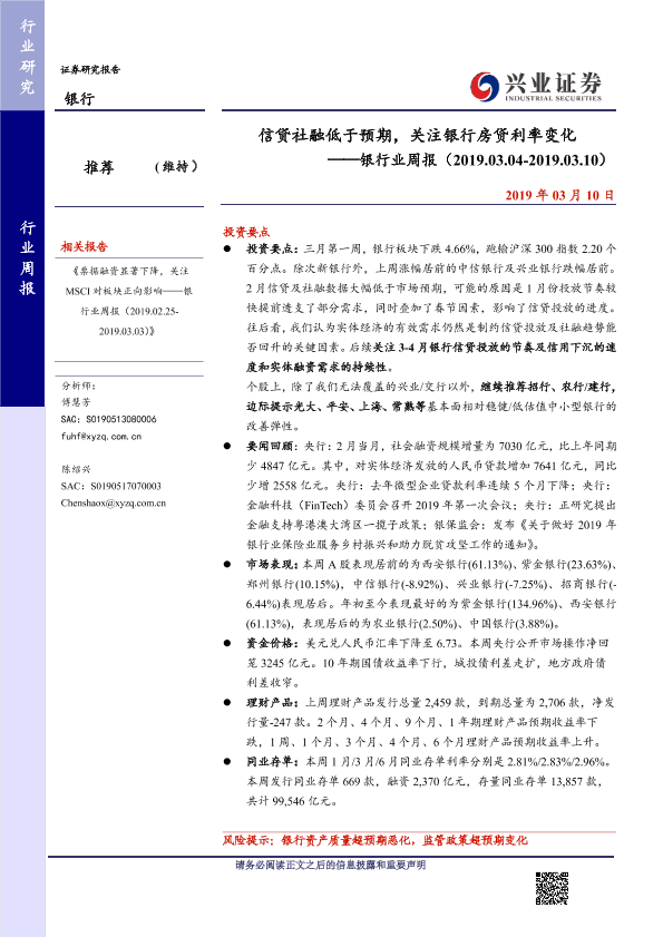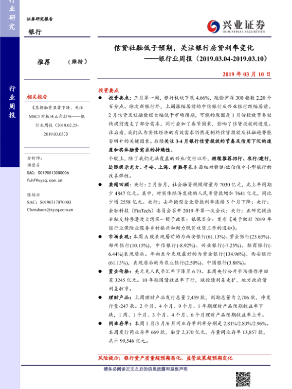 【兴业证券】【20190310】信贷社融低于预期,关注银行房贷利率变化-12页