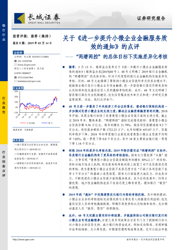 【长城证券】【20190314】‘两增两控’的总体目标下实施差异化考核:关于《进一步提升小微企业金融服务质效的通知》的点评-6页