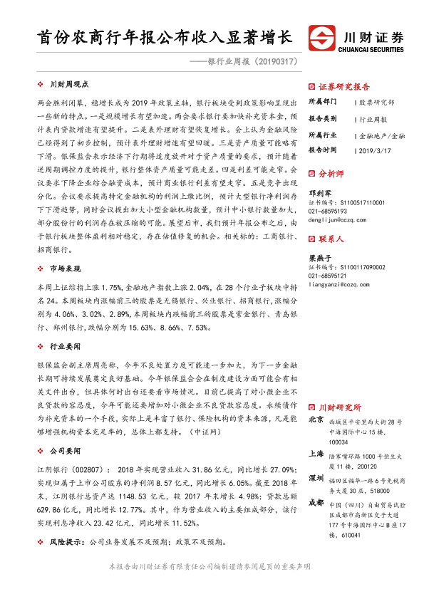 【川财证券】【20190317】首份农商行年报公布收入显著增长-12页