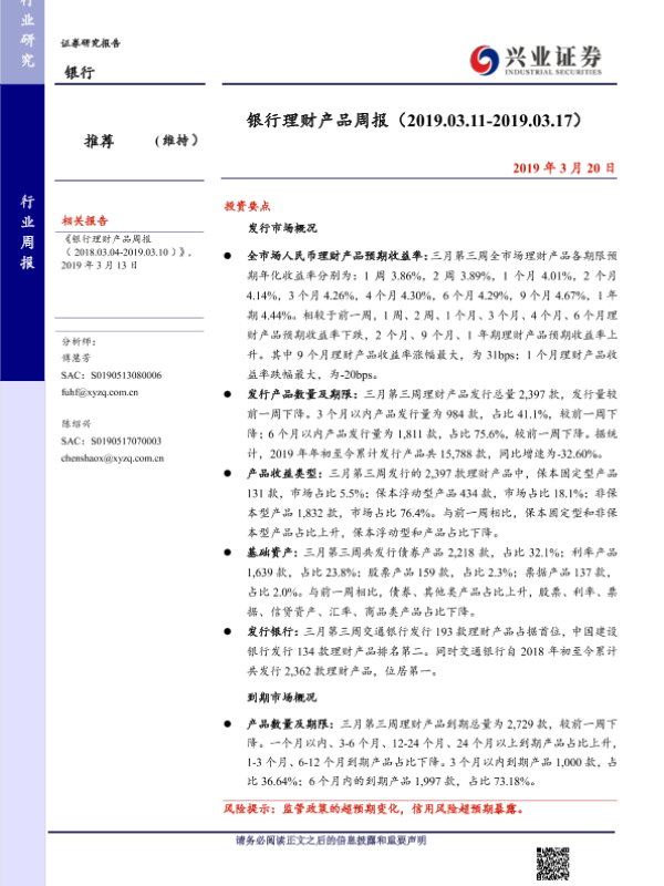 【兴业证券】【20190320】银行理财产品周报-14页
