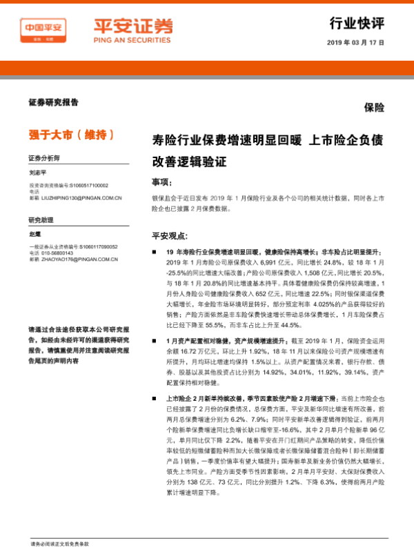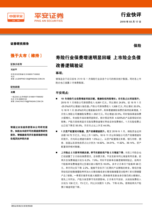 【平安证券】【20190317】寿险行业保费增速明显回暖上市险企负债改善逻辑验证-6页