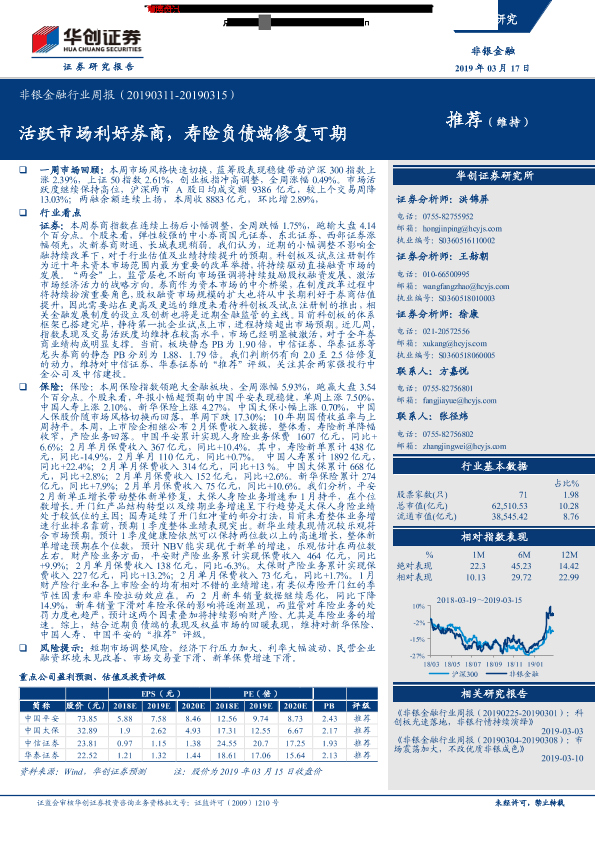 【华创证券】【20190317】非银金融行业周报:活跃市场利好券商,寿险负债端修复可期-17页