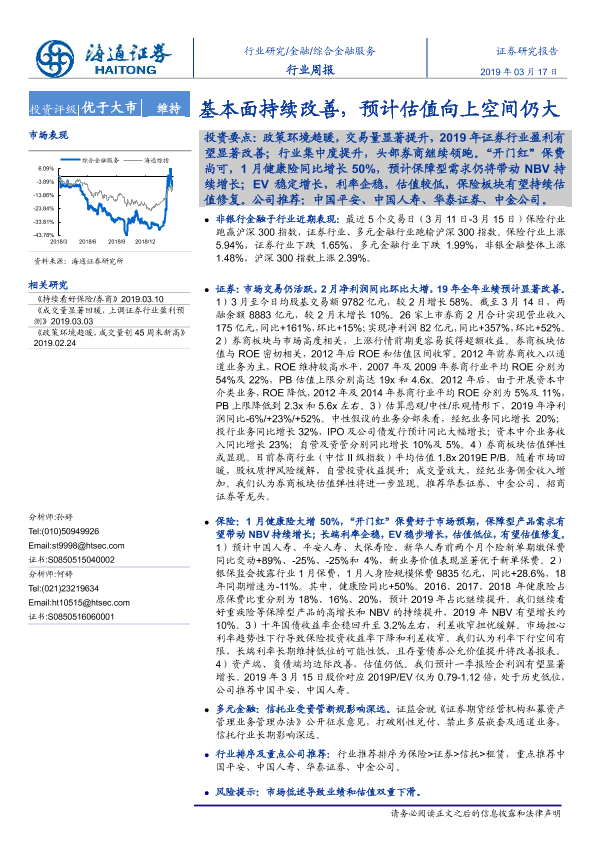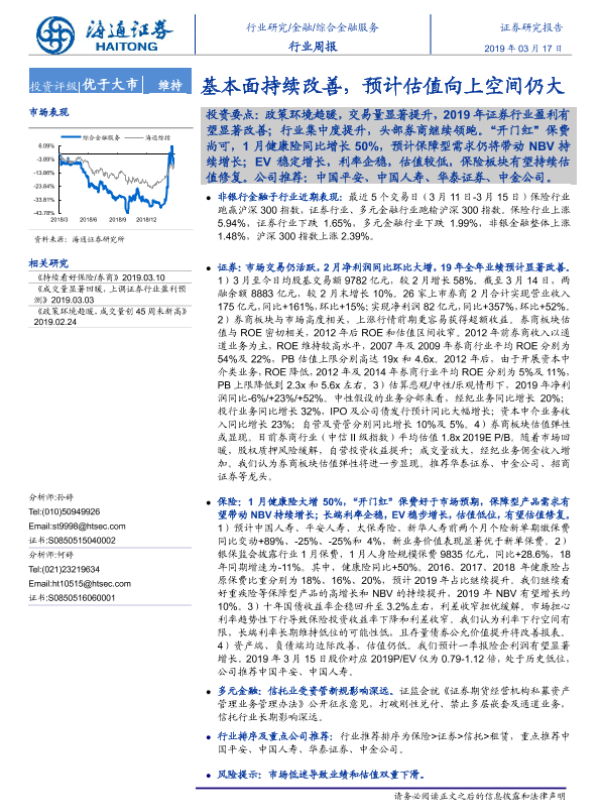 【海通证券】【20190317】综合金融服务行业周报:基本面持续改善,预计估值向上空间仍大-18页