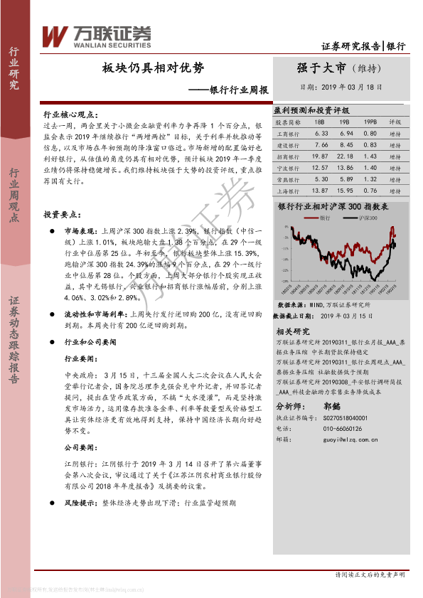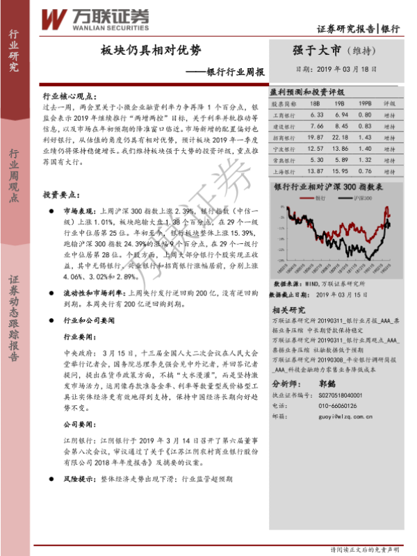 【万联证券】【20190318】银行行业周报:板块仍具相对优势-11页