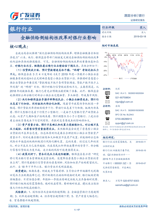 【广发证券】【20190318】银行行业跟踪分析:金融供给侧结构性改革对银行业影响-17页