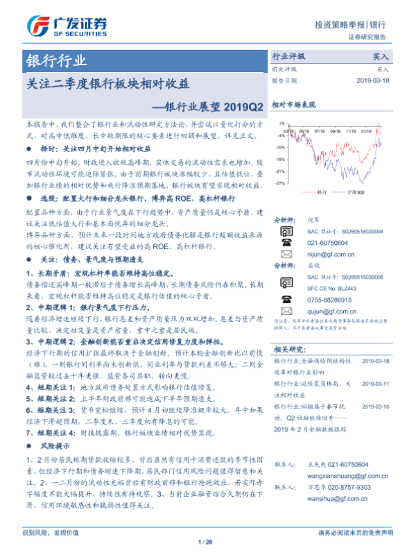 【广发证券】【20190318】银行业展望2019Q2:关注二季度银行板块相对收益-26页